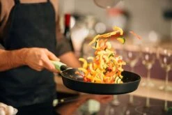 De pan heeft een afmeting van 28 x 5 cm, een inhoud van 1,3 liter en is voorzien van een unieke Biotan anti-aanbaklaag. Deze verlengd de levensduur van uw pan, voorkomt aanbakken en verzekerd u keer op keer van een gemakkelijke reiniging. De pan en het handvat zijn uit hetzelfde stuk materiaal gegoten. Hierdoor is deze bevestigd zonder schroeven of losse onderdelen, wat een zeer veilige en comfortabele handligging als resultaat heeft. Het handvat is voorzien van een laag silicone: voor extra bescherming tegen hoge temperaturen en grip. Gebruik de Gastrolux Squality koekenpan voor een gezonde bereiding van al uw favoriete vlees-, vis-, of groentegerechten: dankzij de Biotan-laag gebruikt u tijdens de bereiding aanzienlijk minder olie of vet.